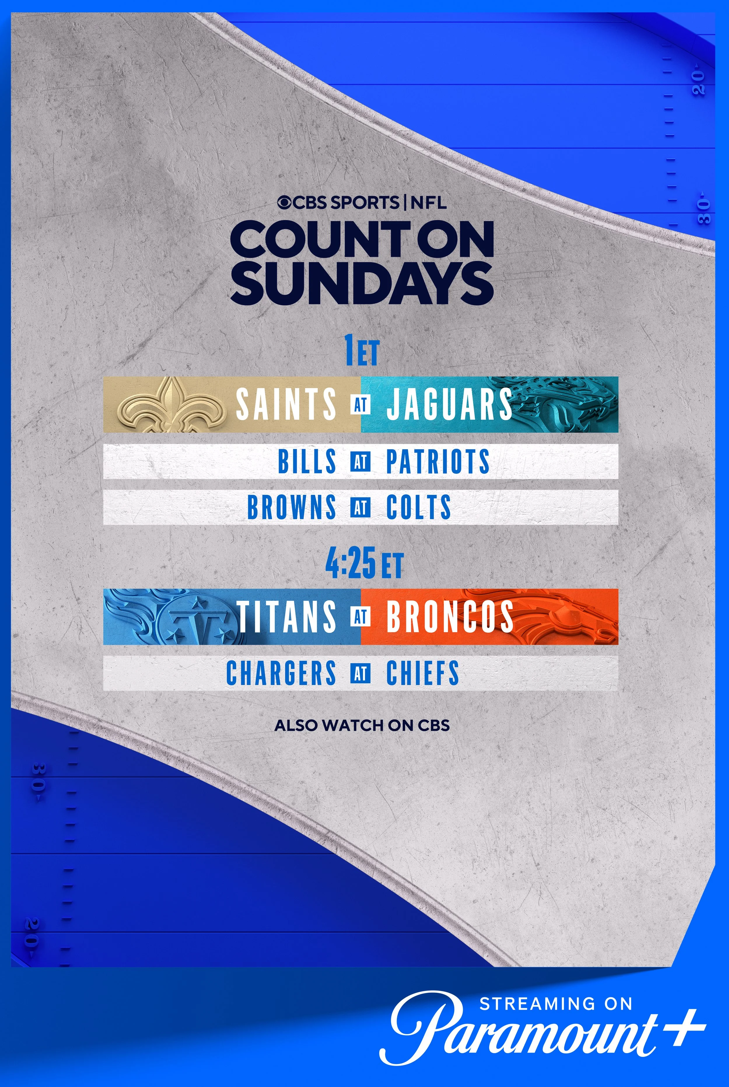The season averaged 25.8 million viewers at the 4:25 p.m. ET timeslot making the NFL on CBS the No. 1 program in all of television